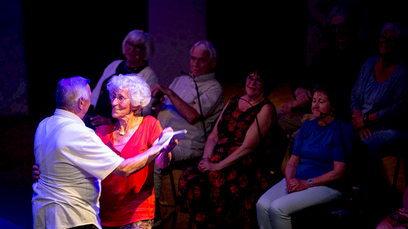 Niet alleen acteur Barrie Stevens durft zich hier kwetsbaar te tonen, ook lokale ouderen uit Venlo stappen het toneel op. Hun echte verhalen vormen de rauwe kern van deze voorstelling over liefde, lust en het leven na de zestig, zeventig, tachtig.