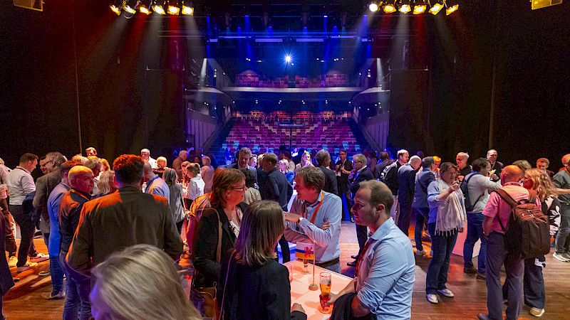 De afsluiter bracht alles weer samen op een plek die je niet snel vergeet: een netwerkborrel op het achtertoneel. Zo eindigde de dag niet met een standaard drankje, maar met een setting die gesprekken net wat losser en energieker maakt.